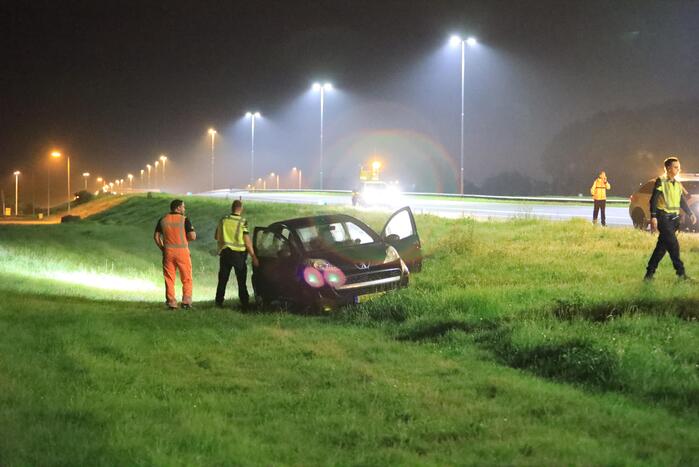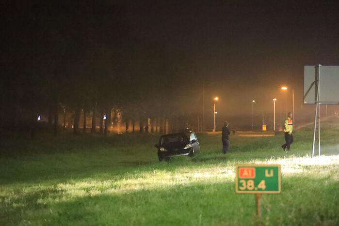 Net voorbij de oprit van Amersfoort-West werd onderaan het talud een auto aangetroffen. De bestuurder van de auto werd niet aangetroffen. Agenten hebben in de omgeving gezocht, maar niemand werd gevonden. Een berger is gekomen en heeft het voertuig afgesleept. Wat er precies gebeurd is, is niet duidelijk. Mogelijk is de bestuurder met zijn auto van de weg geraakt en van het talud afgereden.