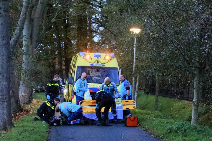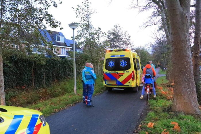 Een fietser is gevallen met de fiets en ernstig gewond geraakt. Één persoon werd op eventuele verwonding gecontroleerd door het ambulancepersoneel en werd uiteindelijk per ambulance overgebracht naar het ziekenhuis. De politie heeft het verkeersongeval in onderzoek.