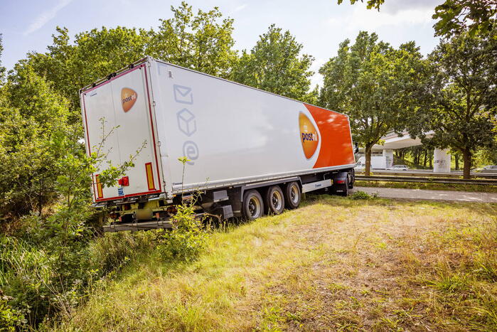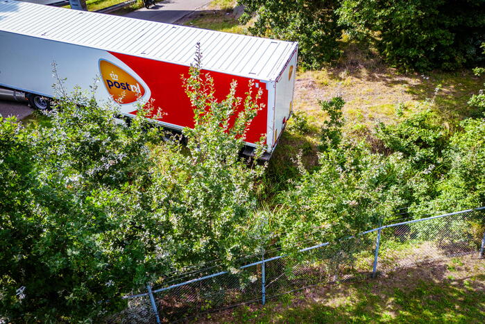 HOOGLAND - Donderdagmiddag 14 september rond 15.00 uur is het opnieuw misgegaan met een vrachtwagen van PostNL aan de Lindeboomseweg in 112 Hoogland.