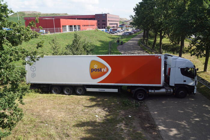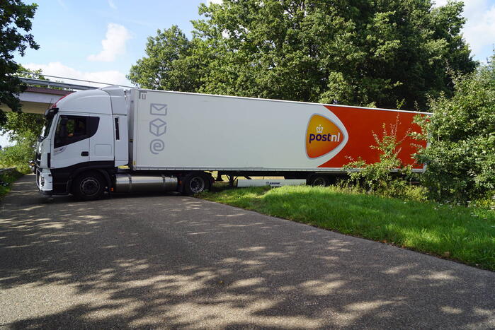 Op 14 juli kwam een vrachtwagen van PostNL ook al in de problemen bij het keren.