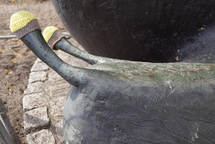 Het blijft al jaren een raadsel wie regelmatig gehaakte mutsen op De Slak plaatst. Diverse mutsen zijn in het verleden al verschenen, waaronder mutsen in de kleuren van Oekraïne, regenboogkleuren, kerstmutsen en zelfs een oranje muts tijdens het EK voetbal. Het beeld werd in de late jaren zestig geschonken aan het Spoorwegpensioenfonds door de gemeente en stond oorspronkelijk voor hun kantoorgebouw aan de Stationsstraat. Na een verbouwing aan het pand was er geen plaats meer voor het kunstwerk, waarna het fonds het aan de gemeente schonk. Sinds 2011 staat het beeld op de huidige rotonde.