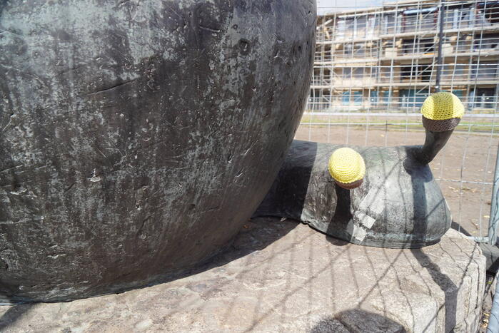 HOOGLANDERVEEN - Op donderdagmiddag 14 september bleek dat de Slak op Rotonde 9 in 112 Hooglanderveen was voorzien van bouwhelmen.