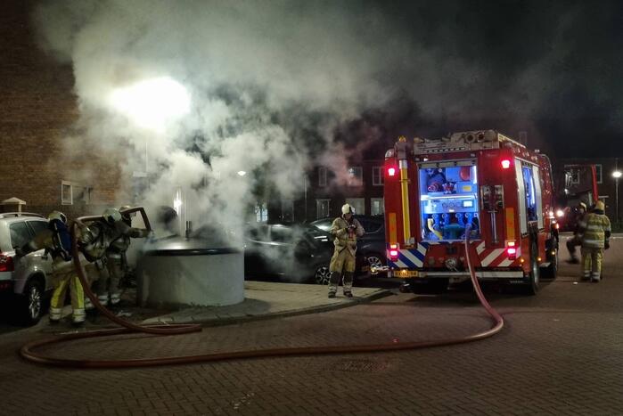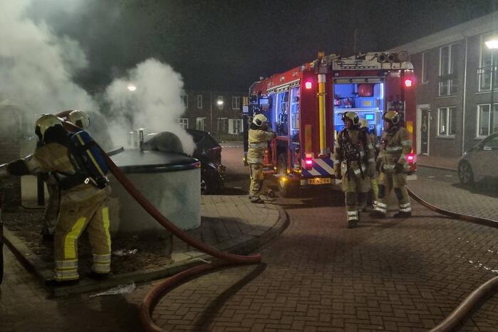 In een container voor oud papier was door onbekenden brand gesticht. De brandweer heeft de deels ondergrondse container gevuld met water om de brand onder controle te krijgen. Door de brand kwam veel rook vrij.