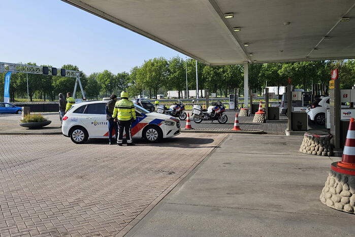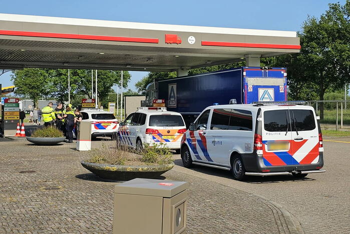De politie heeft meerdere personen aan weten te houden bij het tankstation. Volgens de politiewoordvoerder zou het gaan om een vrijheidsberoving die vermoedelijk in Nijmegen is begonnen. Het slachtoffer zou in Boxmeer Brabant zijn ontsnapt. De politie doet onderzoek in een auto waar de verdachten in zaten.