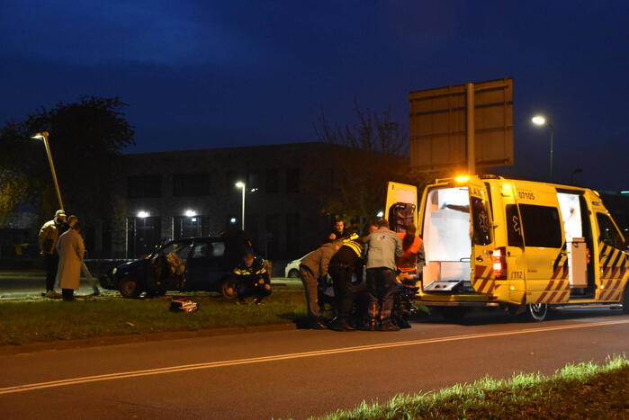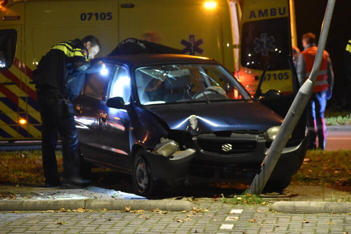 Een automobilist was van de weg geraakt en raakte hierbij meerdere betonnen schrikblokken. De bestuurder botste uiteindelijk frontaal tegen een lantaarnpaal. De bestuurder werd na behandeling vervoerd naar een ziekenhuis. Een opgeroepen traumahelikopter kwam niet meer ter plekke.