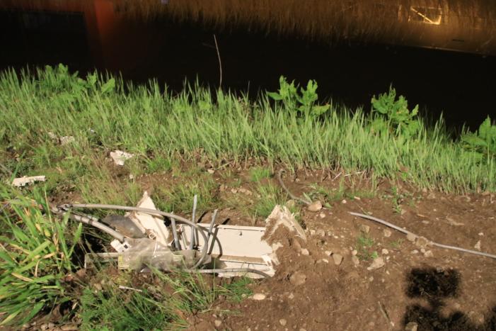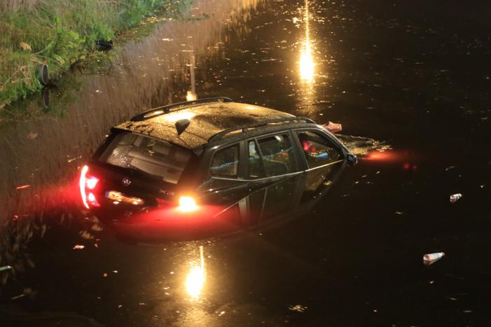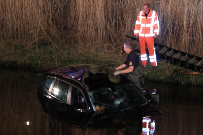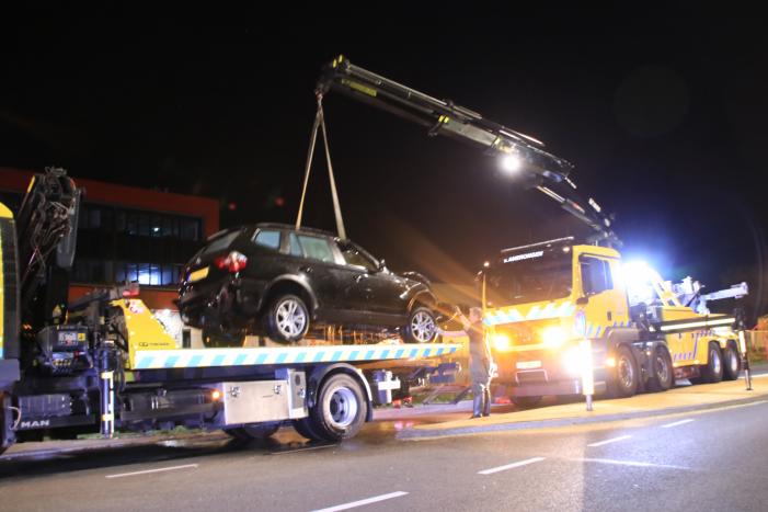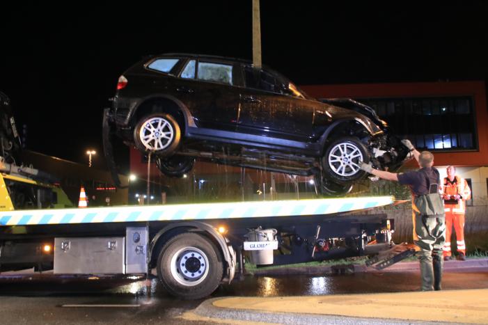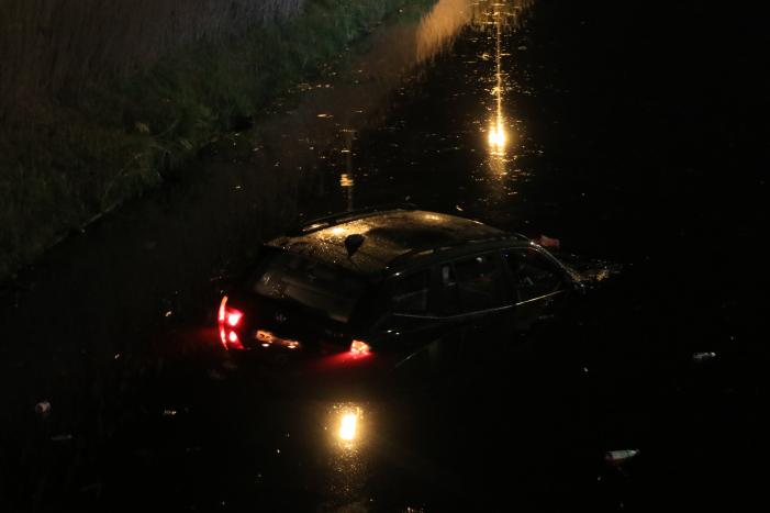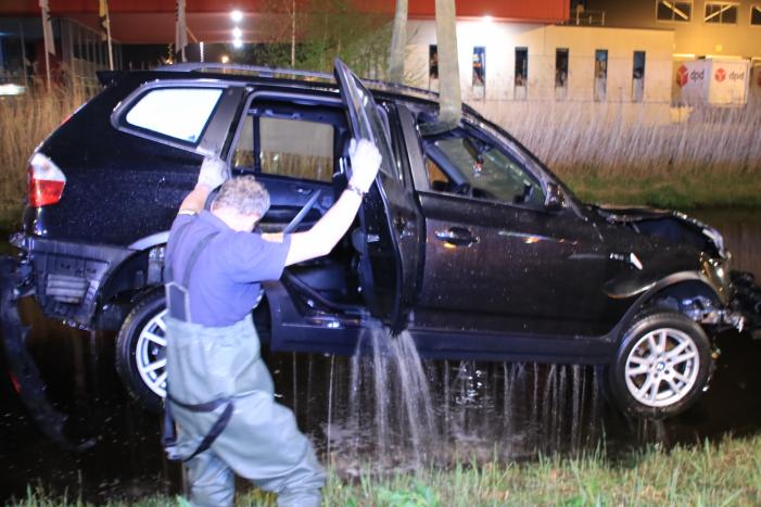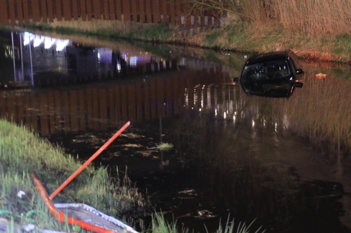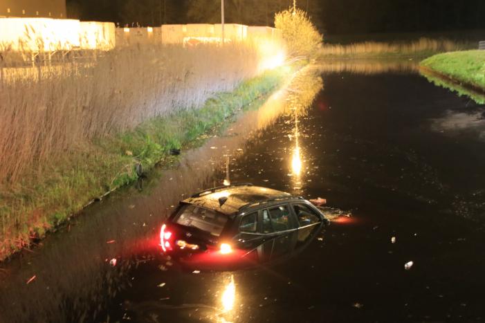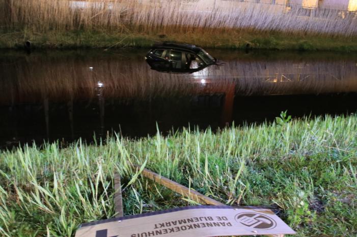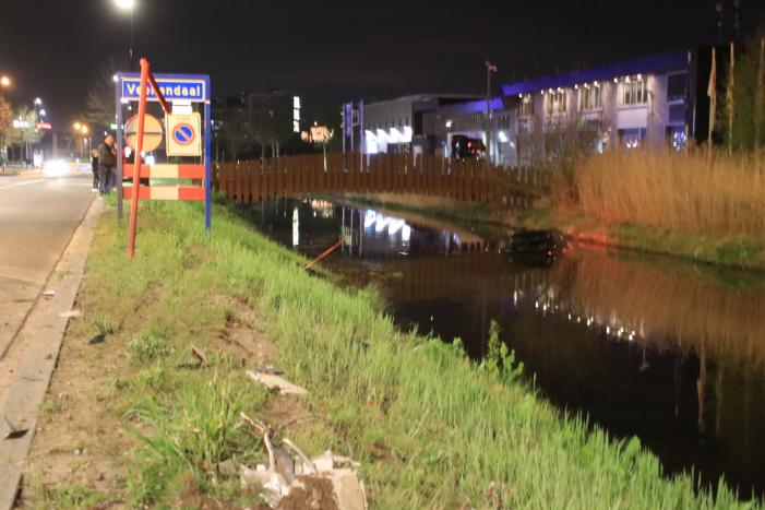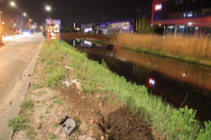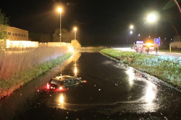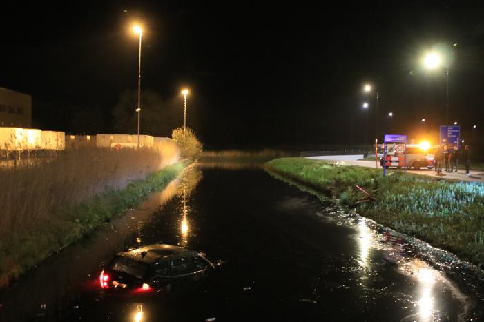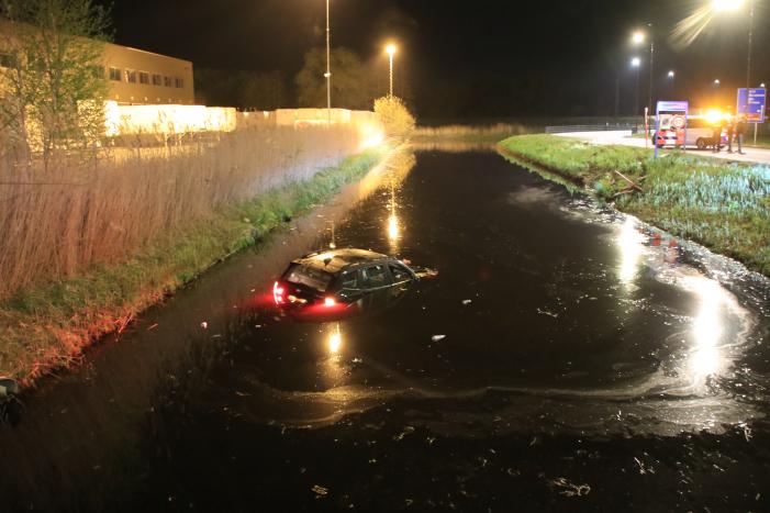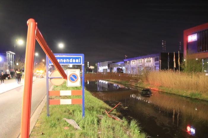 Een automobilist zou de macht over het stuur zijn verloren in de bocht en belandde vervolgens met zijn voertuig in een sloot. Bij het eenzijdig ongeval heeft de bestuurder ook een informatiebord uit de grond gereden.
