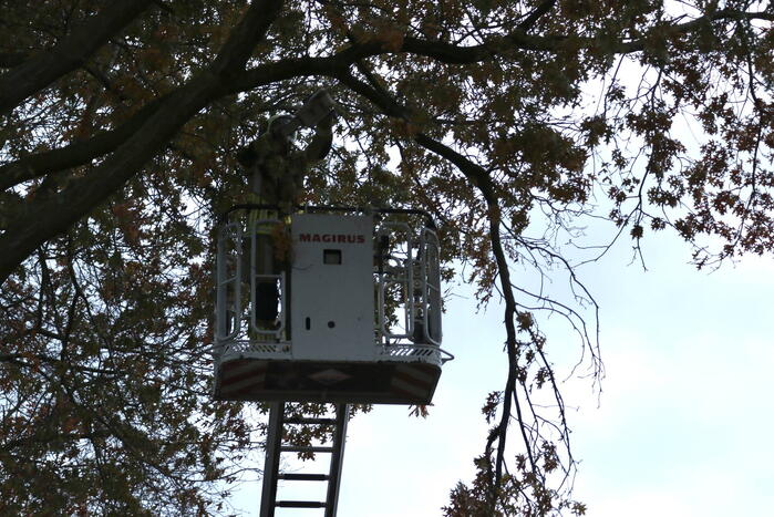 Een grote tak dreigde uit een boom te vallen en op een weg terecht te komen. Vanwege het mogelijke gevaar werd de brandweer ingezet. Met behulp van een ladderwagen is de tak verwijderd waarna het gevaar geweken was.