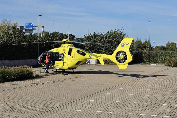 Meerdere ambulances en een traumahelikopter werden ingezet voor een medische noodsituatie bij een hotel. Na behandeling door de trauma-arts is de patiënt vervoerd naar een ziekenhuis. De trauma-arts reed mee in de ambulance.