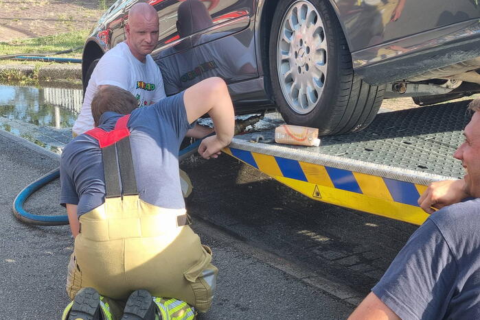 Een bergingsbedrijf heeft de brandweer geassisteerd en vervolgens het voertuig afgesleept.