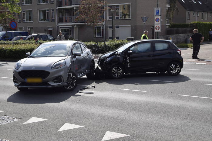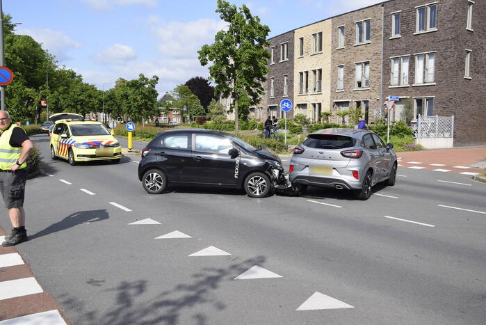 Op de kruising met de Weverij zijn twee personenauto's in botsing gekomen. De inzittenden zijn gecontroleerd op verwondingen maar vervoer naar een ziekenhuis bleek niet nodig. Beide auto's raakten zwaar beschadigd.