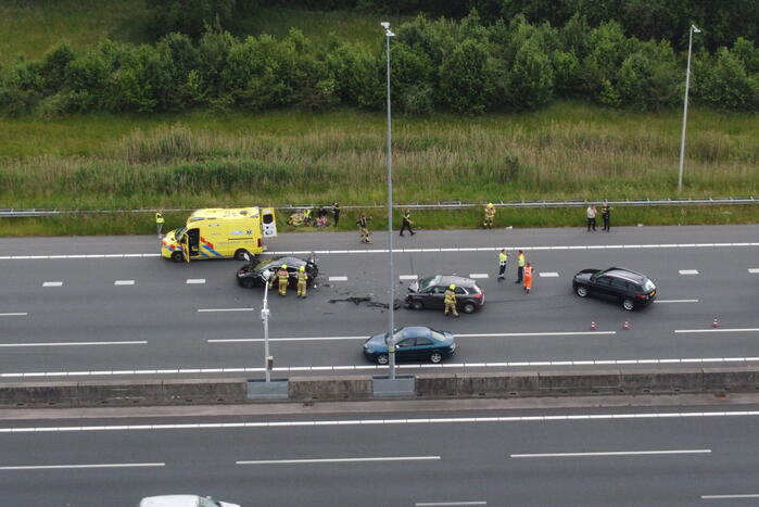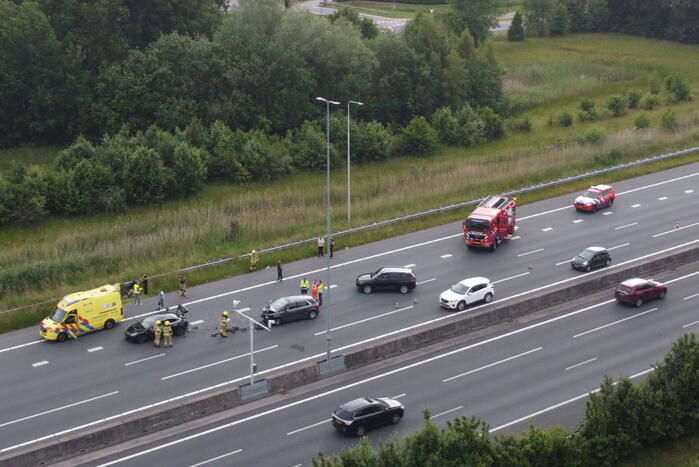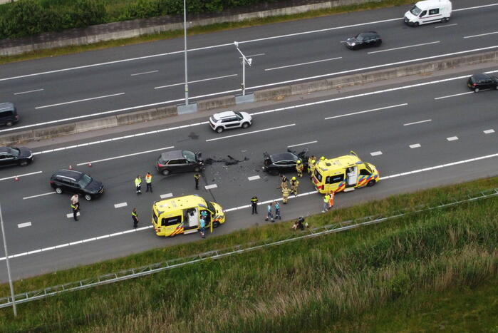 Er zijn bij een ongeval op de snelweg twee auto's ernstig beschadigd. Zowel de ambulancedienst als brandweer zijn met spoed naar het ongeval gekomen om hulp te verlenen.