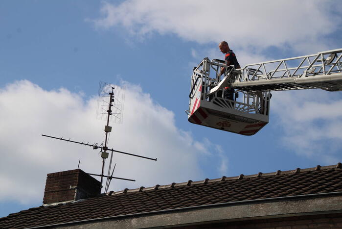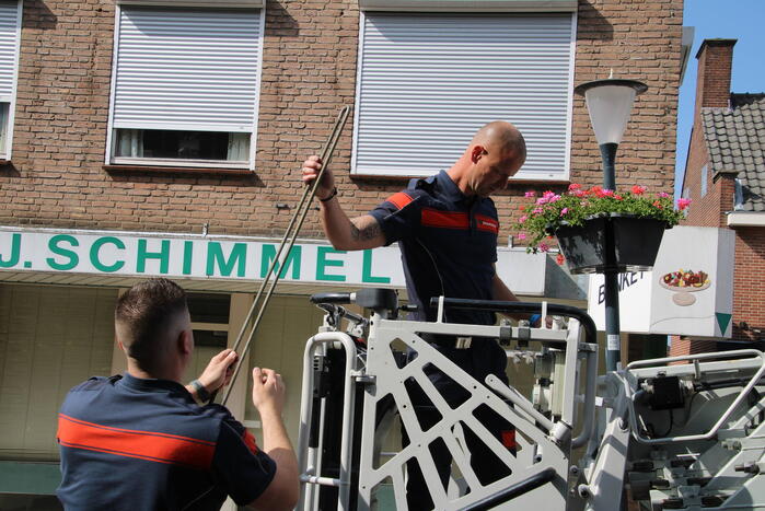 De loshangende antenne zorgde voor een onveilige situatie in de straat waarna de brandweer in actie was gekomen. Met behulp van een ladderwagen van de brandweer is een deel van de antenne eraf gehaald.