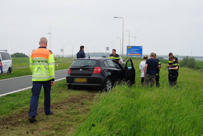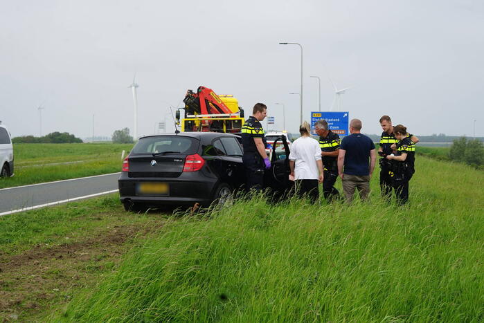 Beide personen raakten niet gewond. Een berger heeft de auto afgesleept. De rijbaan richting Oude-Tonge was tijdens de afhandeling van het ongeval afgesloten.