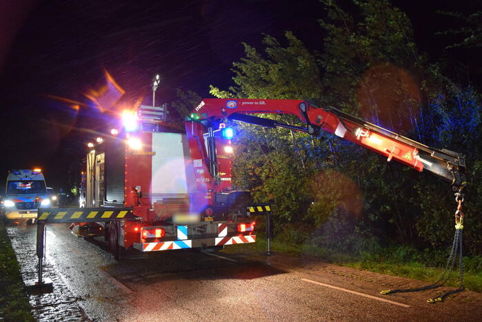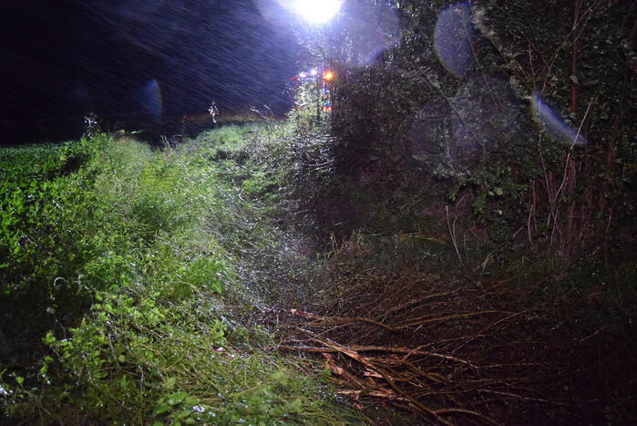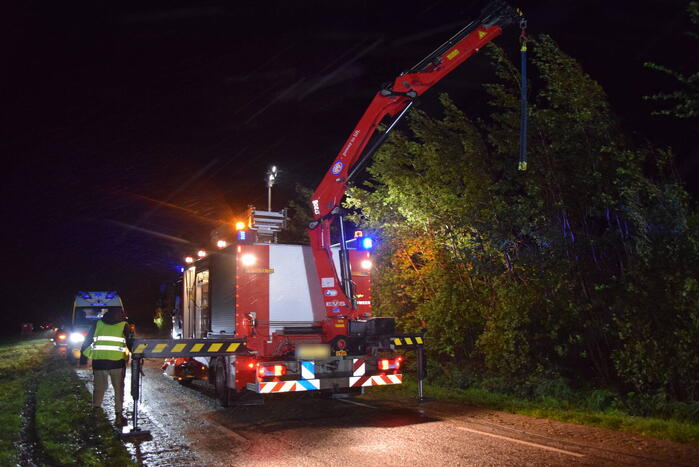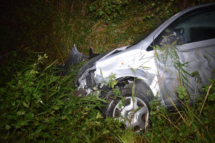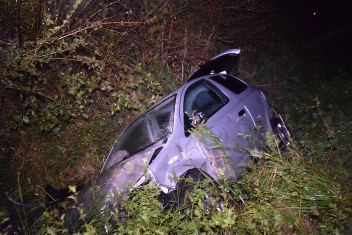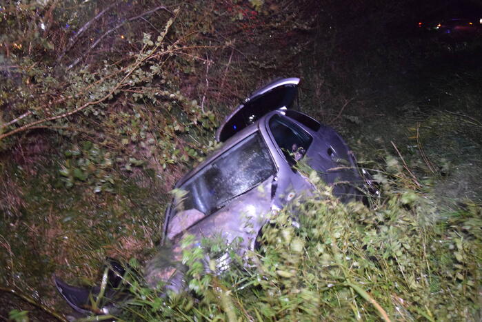 Een personenauto met twee inzittenden was van de weg geraakt en in droge sloot terechtgekomen. De auto lag zo'n 25 meter verder achter bosjes waardoor het even duurde voor de auto gevonden werd. De bijrijder was uit de auto gegaan voor hulp, bij aankomst van de brandweer kon hij de auto niet meer vinden en wist die de exacte locatie van het ongeval niet meer.
