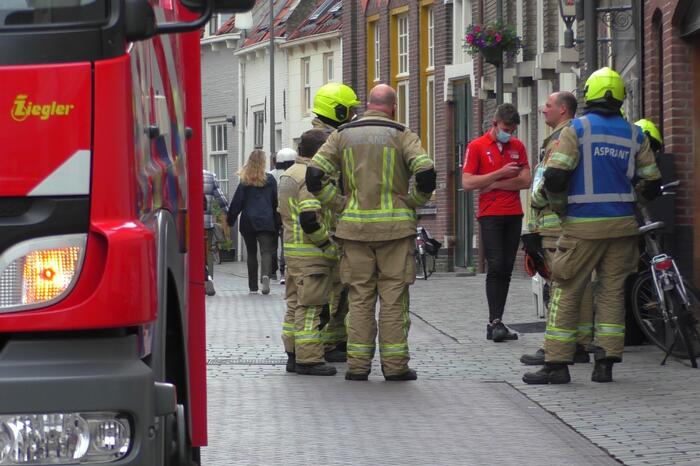 Een adviseur gevaarlijke stoffen en de brandweer doen onderzoek naar de gaslucht. Uit voorzorg is de winkel tijdelijk gesloten.