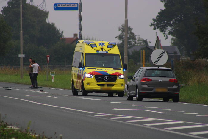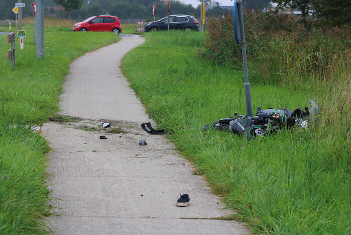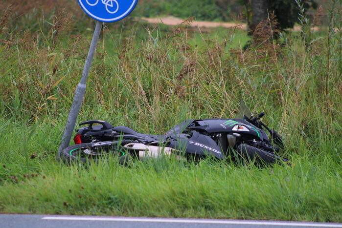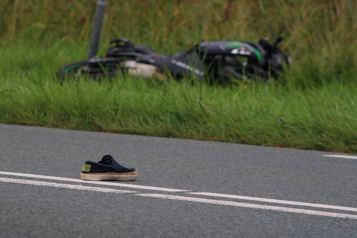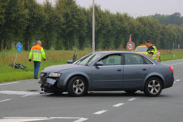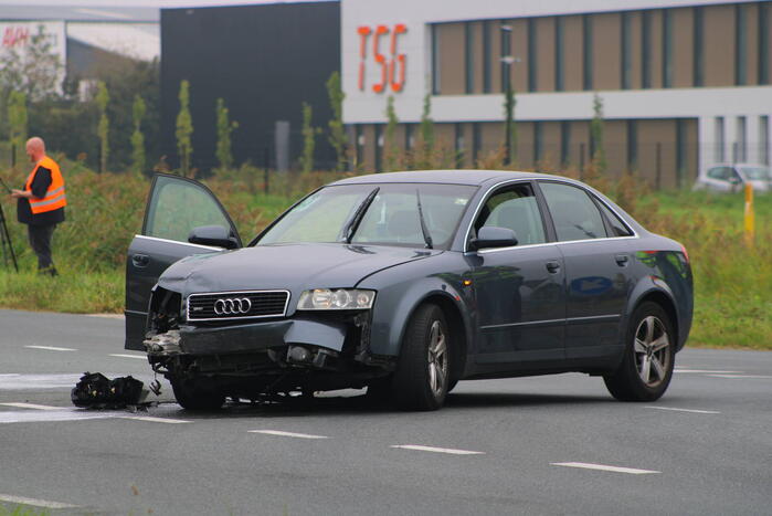De motor en auto raakten beide flink beschadigd. De weg was deels afgesloten vanwege het ongeval.