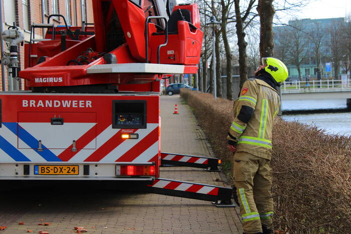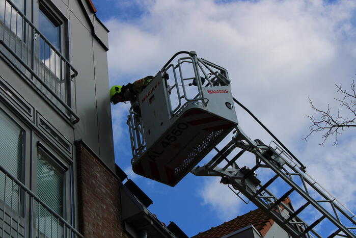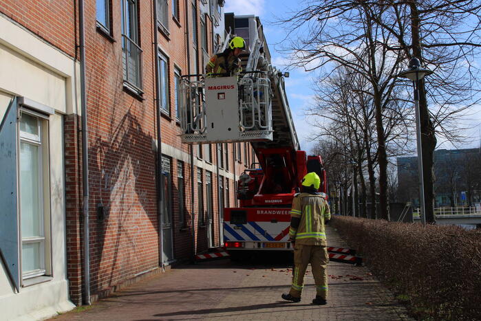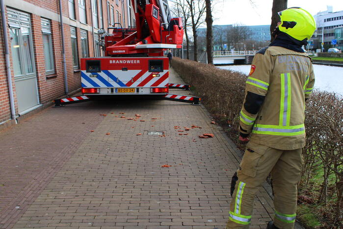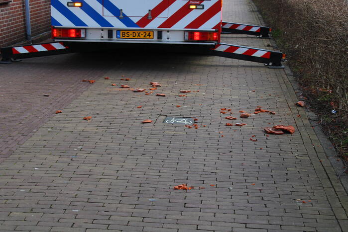 Van een appartementengebouw zijn aantal dakpannen gewaaid en op het naastgelegen fietspad terechtgekomen. De brandweer is met een hoogwerker gekomen om de situatie veilig te stellen. De straat is afgezet om de hulpdiensten de ruimte te geven.