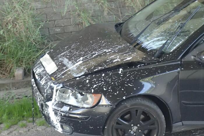 Twee personenauto's zijn beschadigd geraakt na een kop-staart botsing. Één van de voertuigen kwam door de botsing onder de witte verf te zitten. De inzittenden zijn gecontroleerd in een ambulance maar raakten niet gewond.