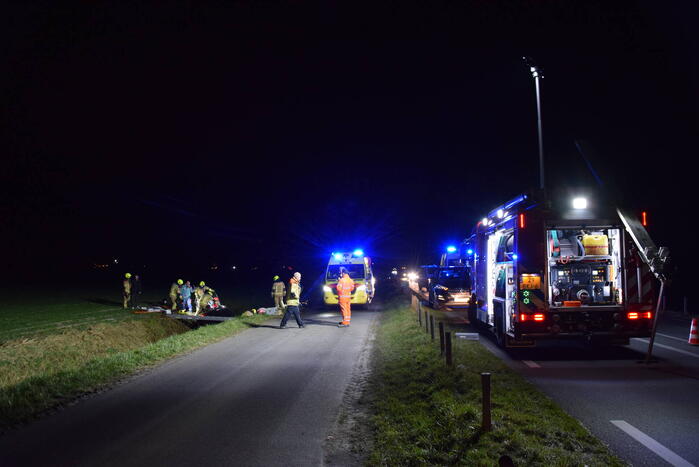 De hulpdiensten werden massaal ingezet, zo ook werd de traumahelikopter ingevlogen om naar de locatie te komen. Hoe het verkeersongeval precies heeft kunnen gebeuren, is niet duidelijk. De brandweer is ingezet om de twee slachtoffers te bevrijden. De twee inzittenden zijn zwaargewond geraakt en na de eerste controle met spoed overgebracht naar het ziekenhuis.