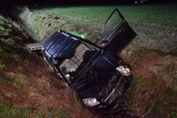 Door onbekende oorzaak is de bestuurder van de weg geraakt heeft een paal geraakt en is in een sloot tot stilstand. De Verkeersongevallen Analyse van de politie gaan onderzoek doen naar de toedracht van het ongeval.