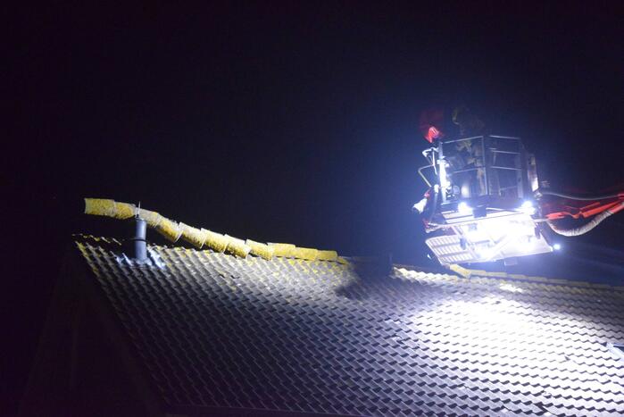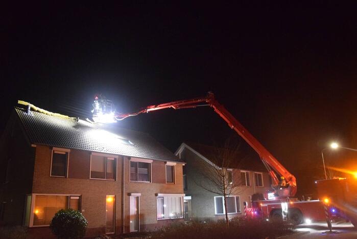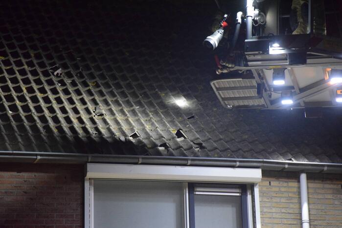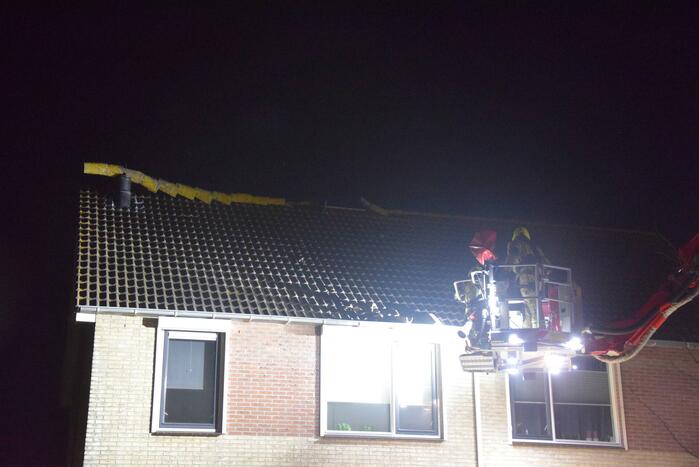 Door de storm was de nok van de woning afgewaaid. Omdat de dakpannen naar beneden dreigde te waaien werd de brandweer ingezet. Met behulp van de hoogwerker zijn de dakpannen naar beneden gehaald waarna het gevaar was geweken.