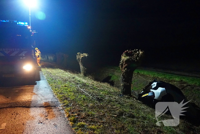 Auto van dijk gereden, bestuurder met spoed naar ziekenhuis