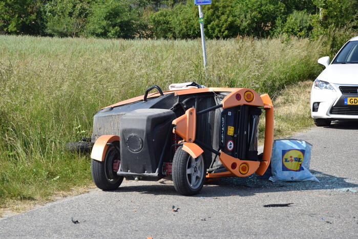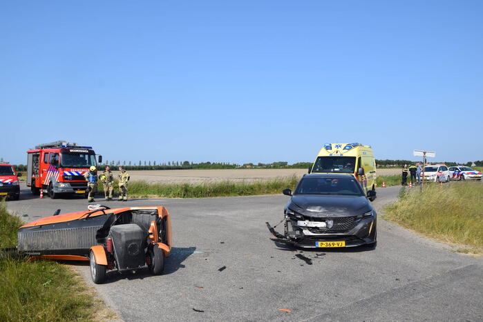 De bestuurder van de 45 km/u auto raakte gewond en is ter controle vervoerd naar een ziekenhuis. Beide voertuigen raakten zwaar beschadigd.