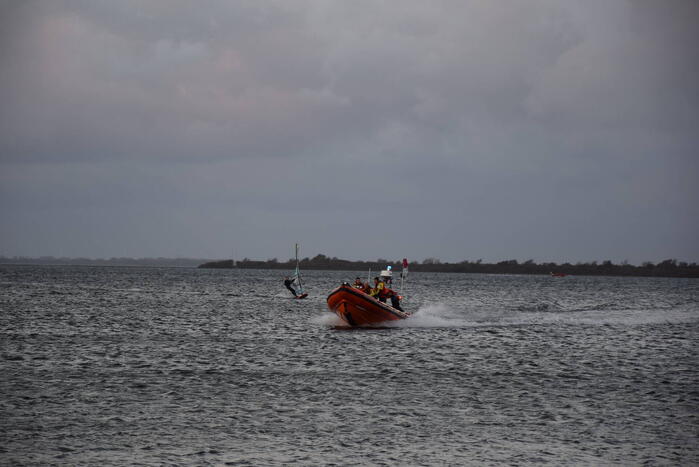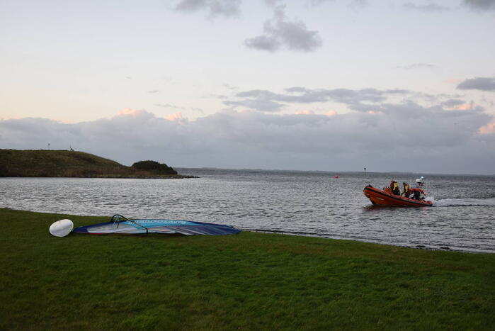De surfer is door de KNRM terug gebracht naar Bommenede. Hierna is de boot terug gekeerd om zijn spullen te zoeken die nog in het Grevelingenmeer dreven.