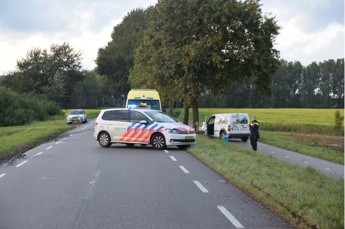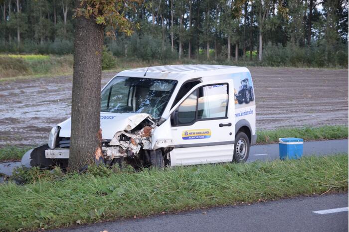 Een bestuurder is met zijn bestelbus van de weg geraakt 50 meter door de berm gereden en frontaaytegen een boom tot stilstand gekomen. De bestuurder is door een ambulancemedewerker gecontroleerd hoefde niet mee naar het ziekenhuis.