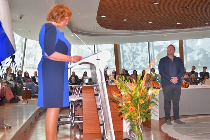 ALPHEN AAN DEN RIJN - Vrijdagmiddag 26 april tegen 12.50 uur was er de jaarlijkse lintjesregen aan de Castellumstraat in 112 Alphen aan den Rijn.