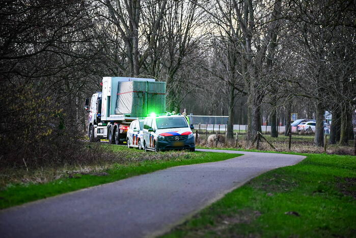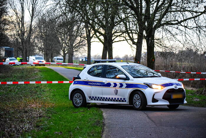 De omgeving is ruim afgezet door de politie. Onderzoek moet uitwijzen of er sprake is van een misdrijf.
