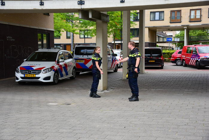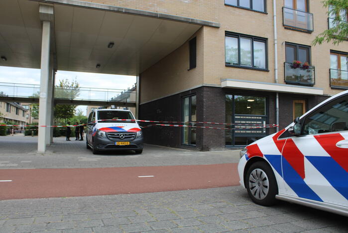 Volgens de politie heeft bij een woning mogelijk een explosie plaatsgevonden. Op straat zou granaatpoeder aangetroffen zijn. In een raam van een flatwoning is door de politie een kogelgat aangetroffen. Specialisten van de brandweer en politie zijn ingezet om onderzoek te doen.