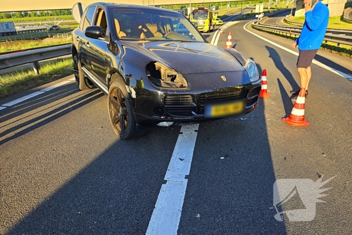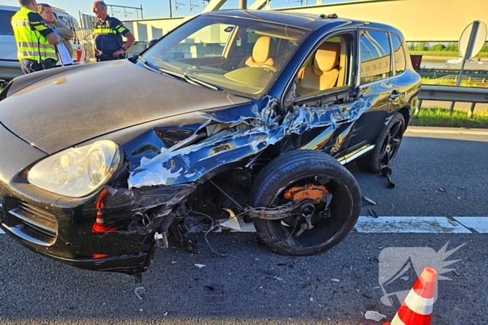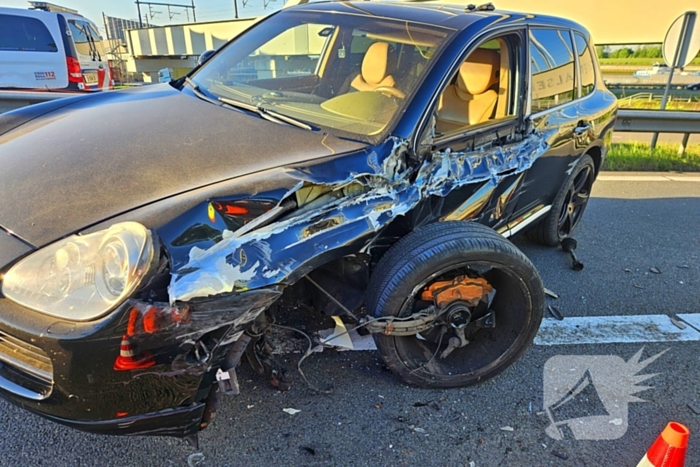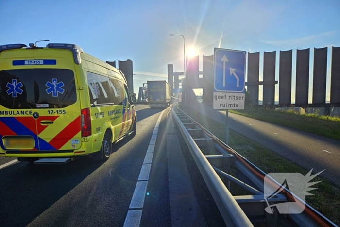 Ter hoogte van de Calandbrug botste een automobilist hard tegen een vrachtwagen. Dit zorgde voor veel schade aan de auto. De bestuurder is in een ambulance meegenomen.