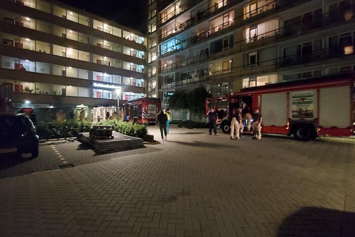 Als gevolg van een kleine brand in een woning van de flat is er over meerdere etages en gangen rook verspreid. Brandweer schaalt op naar grote brand voor extra personeel en materieel om de flat goed te ventileren. Of er personen gewond zijn geraakt, is niet bekend.