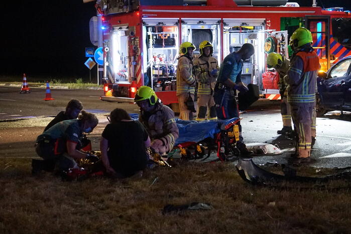 De hulpdiensten kregen de melding binnen via een E-call van één van de betrokken auto's. De ambulancedienst heeft twee personen zwaargewond overgebracht naar het ziekenhuis. Een derde persoon is met lichte verwondingen overgebracht naar het ziekenhuis. In eerste instantie zou er ook een auto in brand zijn gevlogen bij het ongeval, dit bleek ter plaatse niet zo te zijn.