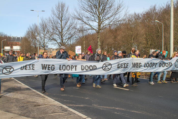 DEN HAAG - Zaterdagmiddag 11 maart werd een, door de burgermeester verboden demonstratie georganiseerd vanuit Extinction Rebellion aan de Rijksweg A12 in 112 Den Haag.