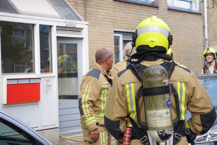 Daarbij kwam veel rook uit de woning en het portiek. De brandweer schaalde op naar middelbrand. De brand was snel onder controle waarna de woning geventileerd is. Het ambulancepersoneel heeft een persoon nagekeken in verband met rookinhalatie.