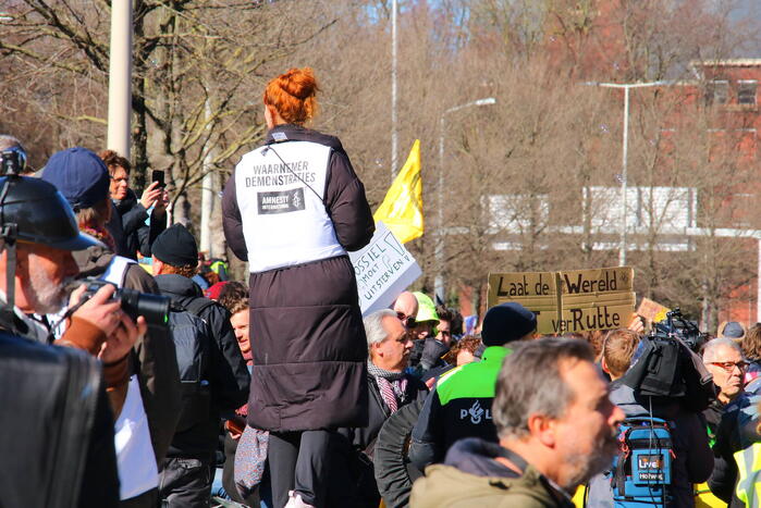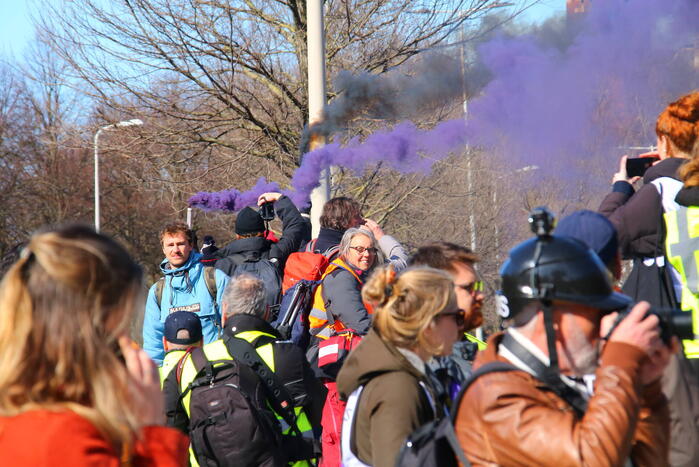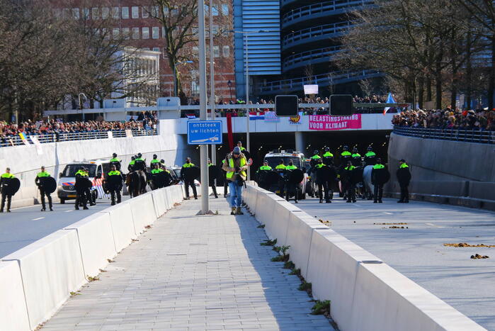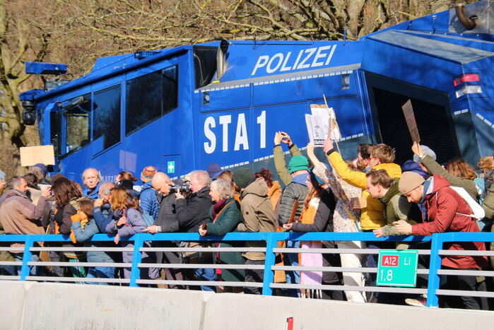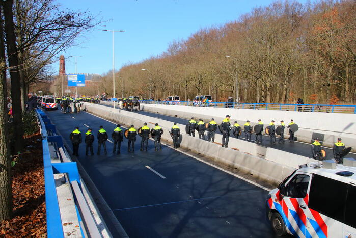 Een grote groep actievoerders die zich hadden verzameld op de A12 bij Den Haag, werden door de politie gevorderd om de A12 te verlaten, deden zij dit niet, zou de ME charges gaan uitvoeren. De burgemeester heeft toestemming gegeven om de waterwerpers van de politie in te zetten als de grote groep actievoerders niet zouden luisteren naar de oproep van de politie om de A12 te verlaten.