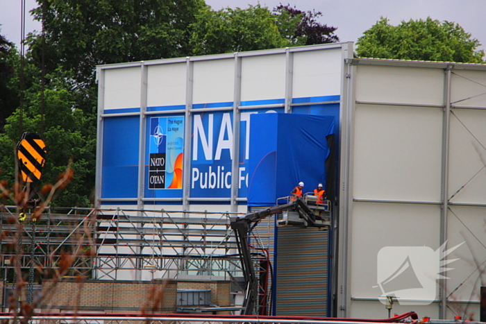 DEN HAAG - Dinsdagmiddag 10 juni zijn de voorbereidingen in volle gang voor de NAVO-top die wordt gehouden in het gebouw van World Forum aan de Johan de Wittlaan - S200 in 112 Den Haag.