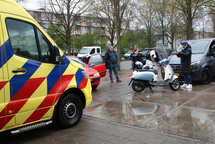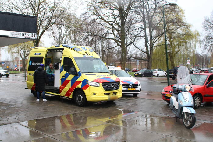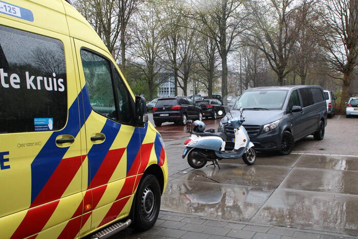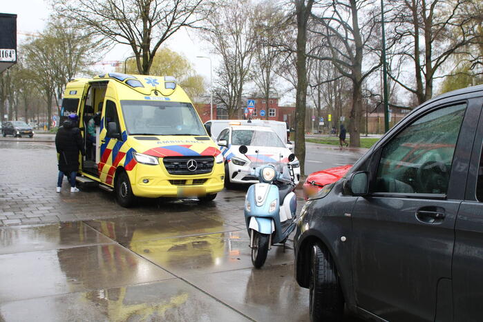 Een scooter met twee opzittenden was in botsing gekomen met een personenauto. De persoon die achterop de scooter zat is nagekeken door het ambulancepersoneel. Hoe het ongeval heeft kunnen gebeuren wordt onderzocht door de politie.