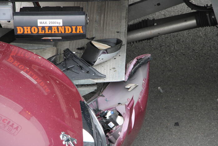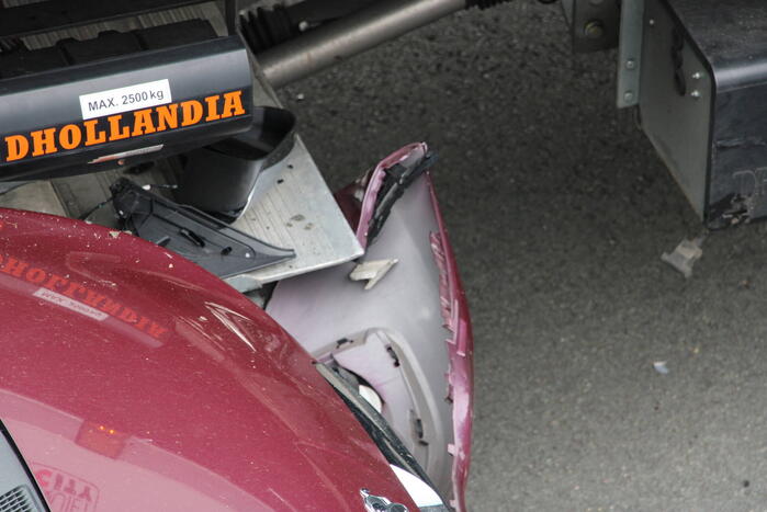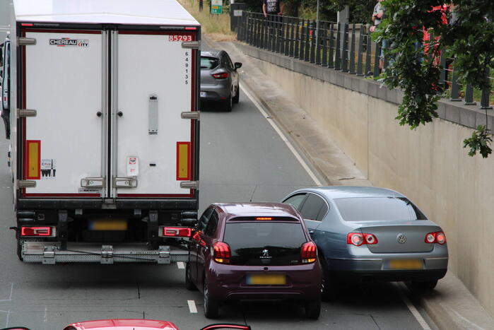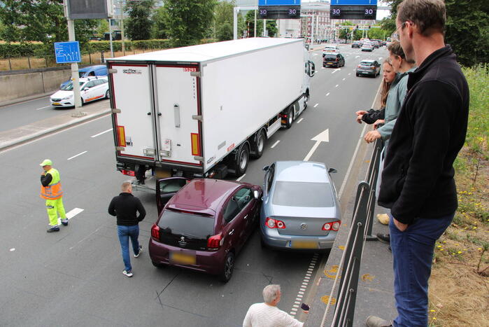 Hierbij kwamen een vrachtwagen en twee personenwagens met elkaar in botsing. Niemand raakte gewond. Een bergingsbedrijf zal zeker een van de personenwagens afslepen.