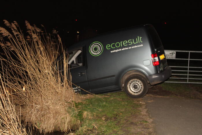 Een bedrijfswagen was van de weg geraakt en kwam daarbij bijna in de sloot terecht. Uit voorzorg werden de hulpdiensten met spoed gealarmeerd, waaronder een duikteam en een oppervlaktereddingsteam van de brandweer. Op locatie bleek dat het voertuig niet in het water was terechtgekomen. De brandweer kon daarop retour.