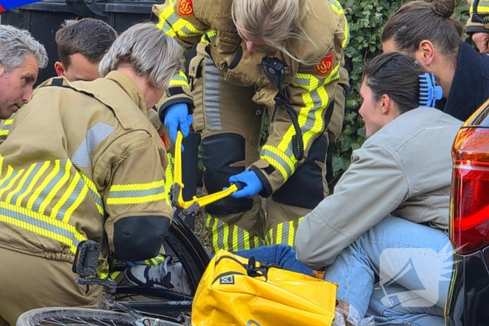 De brandweer heeft een kind bevrijdt welke vastzat in de voorvork van een fiets. Een ambulance werd opgeroepen om het kind na te kijken.