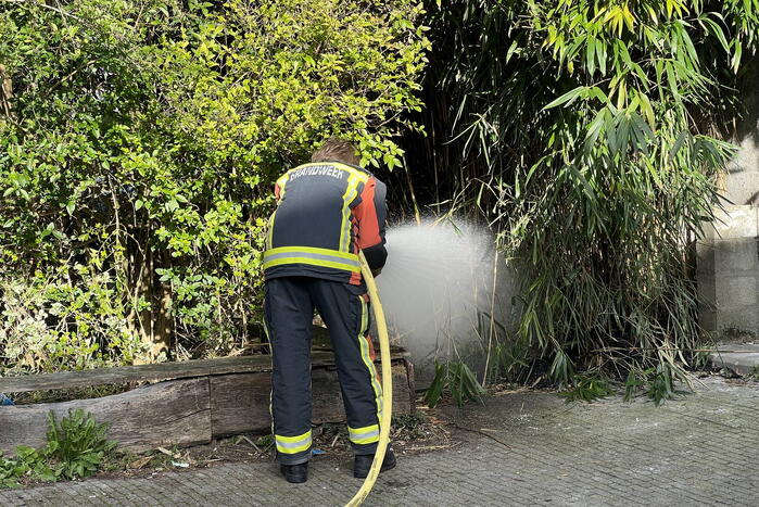 GOUDA - Donderdagmiddag 30 maart rond 17.05 uur was brand ontstaan in een struik aan de Boelekade in 112 Gouda.