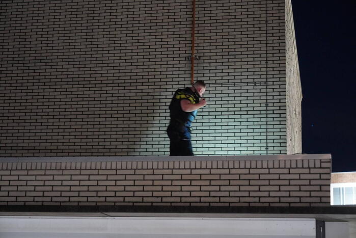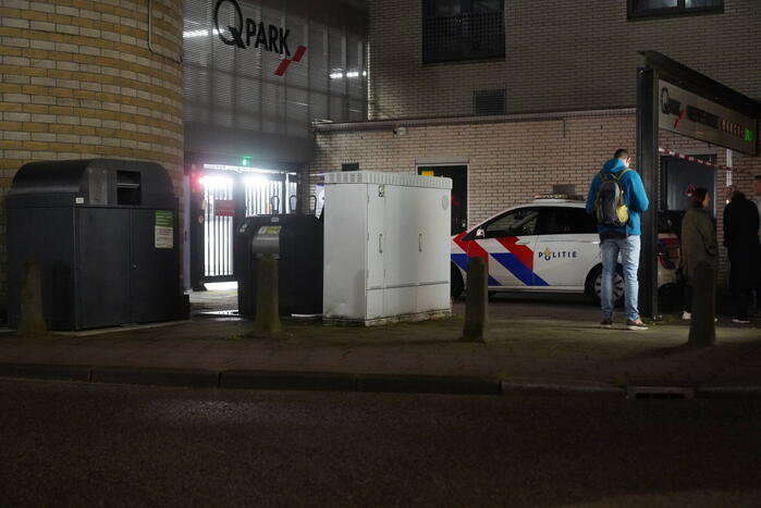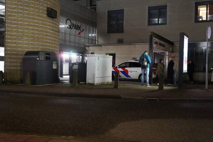 Politieagenten in zware kogelwerende vesten doen onderzoek in en om een parkeergarage. De parkeergarage is hermetisch afgesloten. Waar men op zoek naar was, is niet bekend.