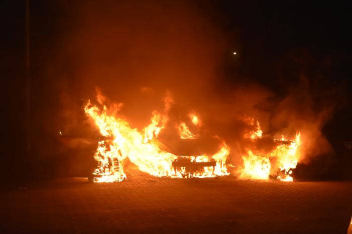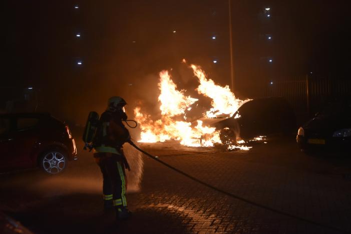 GOUDA - Vrijdagmorgen 1 mei rond 5.10 uur stonden drie geparkeerde auto's volledig in brand aan de Han Hollanderweg in 112 Gouda.