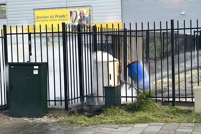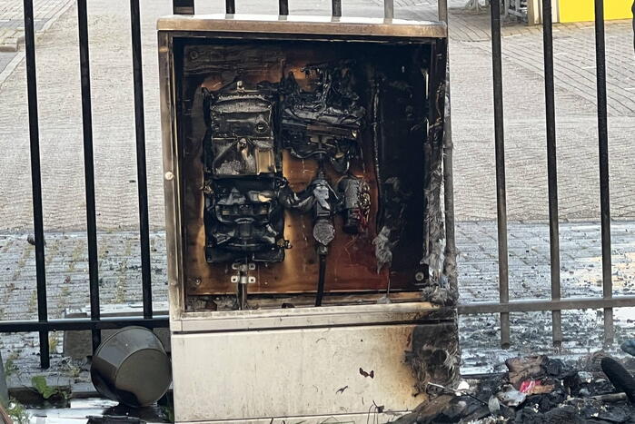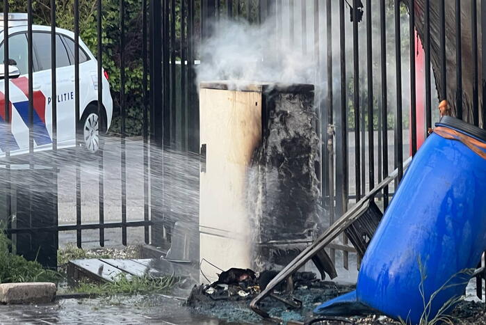 Door onbekende oorzaak was brand ontstaan in een kliko. De brand sloeg uiteindelijk over naar een elektrakast en veroorzaakte flinke rookontwikkeling. De kliko en elektrakast brandde beide grotendeels uit.