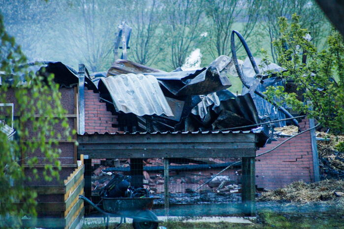 Op het moment dat de brand uitbrak stonden er paarden in de stal. De bewoners en buren hebben de dieren op tijd kunnen redden. De stal is door de verwoestende brand grotendeels verwoest. Met een bouwkraan is het pand deels gesloopt.