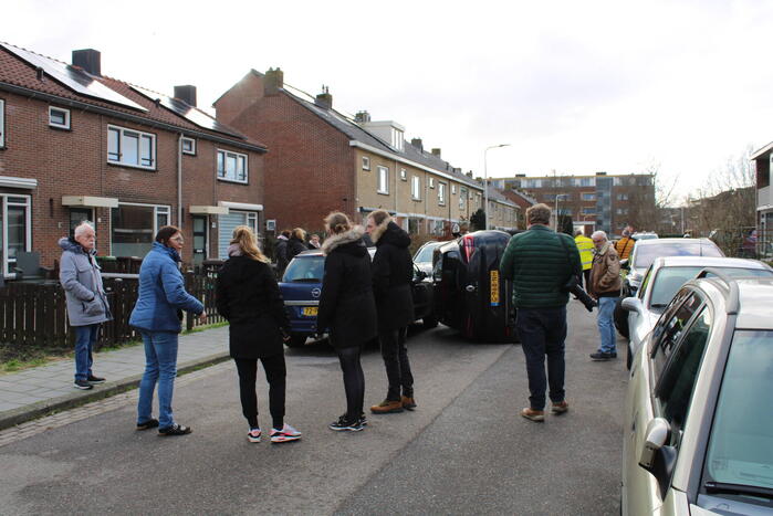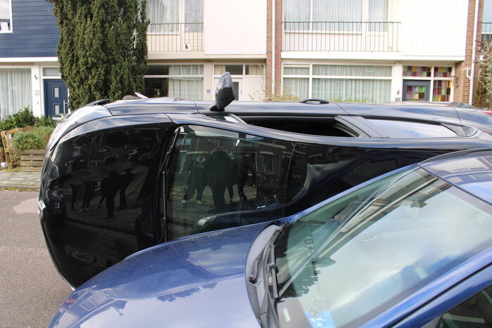 Een automobilist in met een auto op z'n zijkant terechtgekomen na botsing in een woonwijk. De auto kwam op zijn zijkant terecht en raakte daar nog een geparkeerd voertuig. Meerdere hulpdiensten waaronder brandweer en de traumaheli werden ingezet. De inzet van deze hupdiensten bleek uiteindelijk niet nodig. De inzittende konden zelfstandig uit de auto komen.