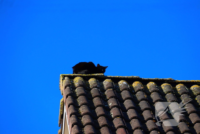 Het betrof een kat die op het dak van een woning zat. De brandweer zette een ladderwagen in om het dier veilig van het dak te halen.
